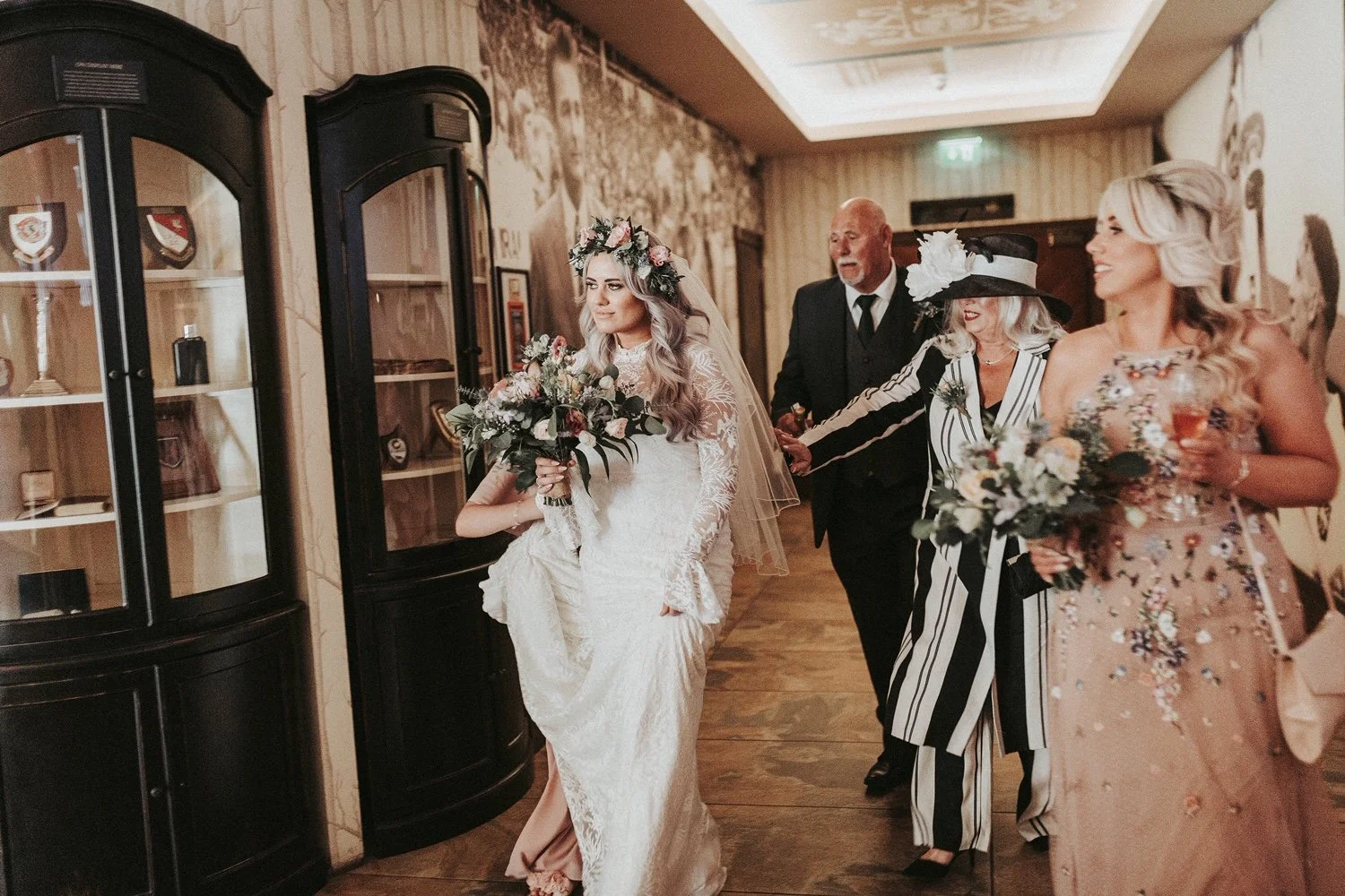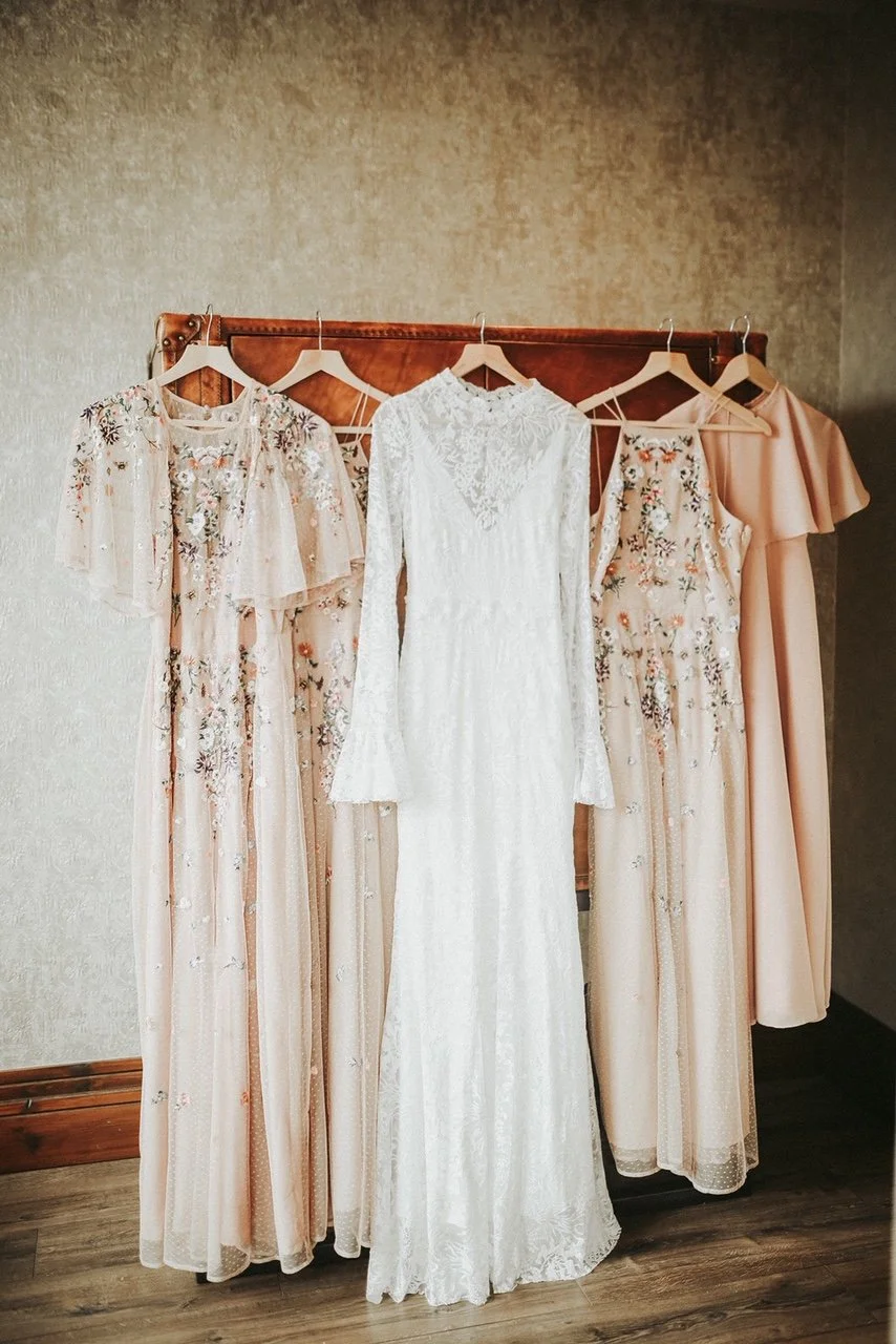 Her bridesmaids made the perfect support act too, in their peachy-shade romantic dresses, they complimented Natasha's modern ethereal style perfectly.